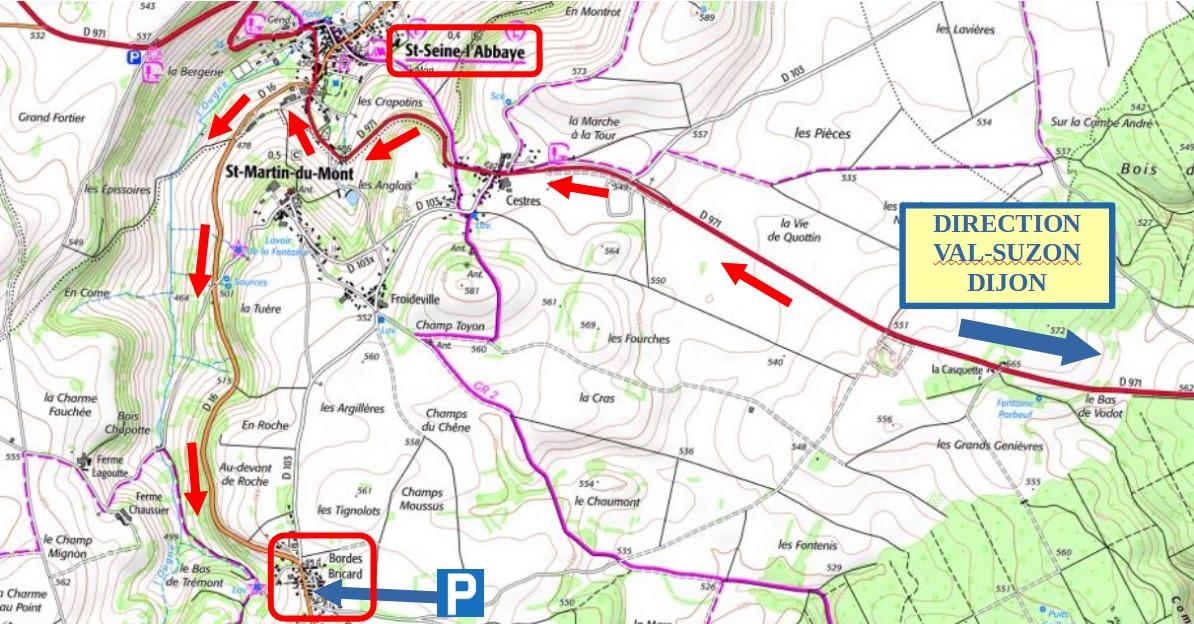 Coordonnées GPS du parking : N 47.30252° E 4.96117°