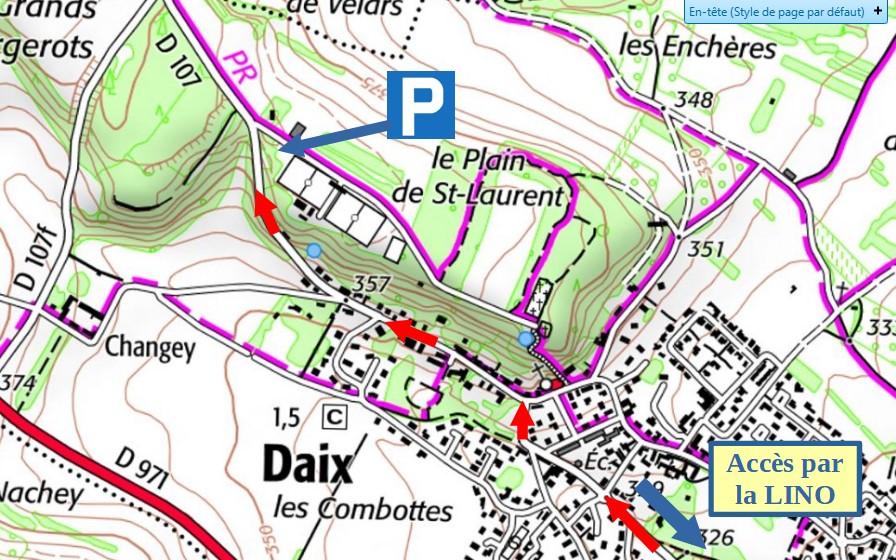 Stationnement sur place : parking des terrains de football à Daix (voir plan).