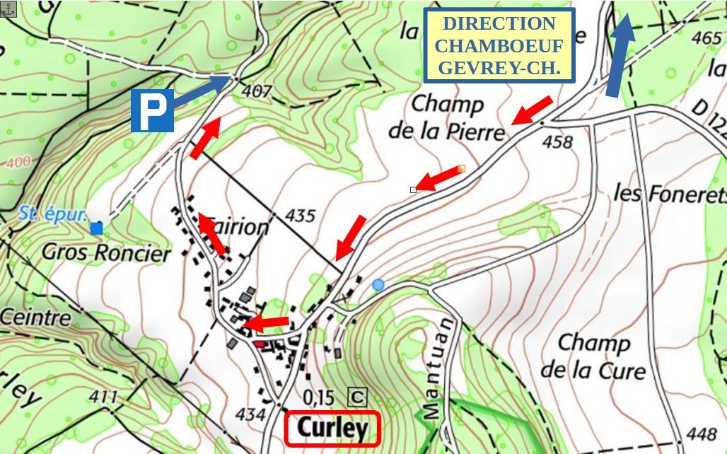 Stationnement sur place : parking à l’extérieur de Curley, vers bennes de recyclage (voir plan).
